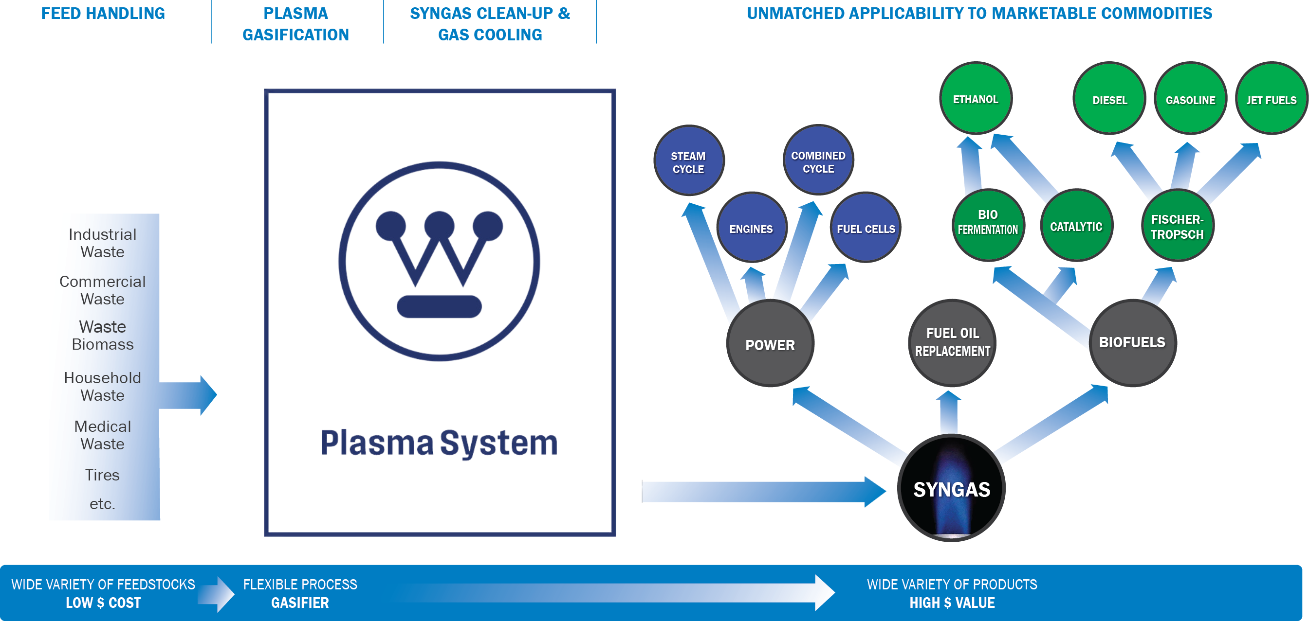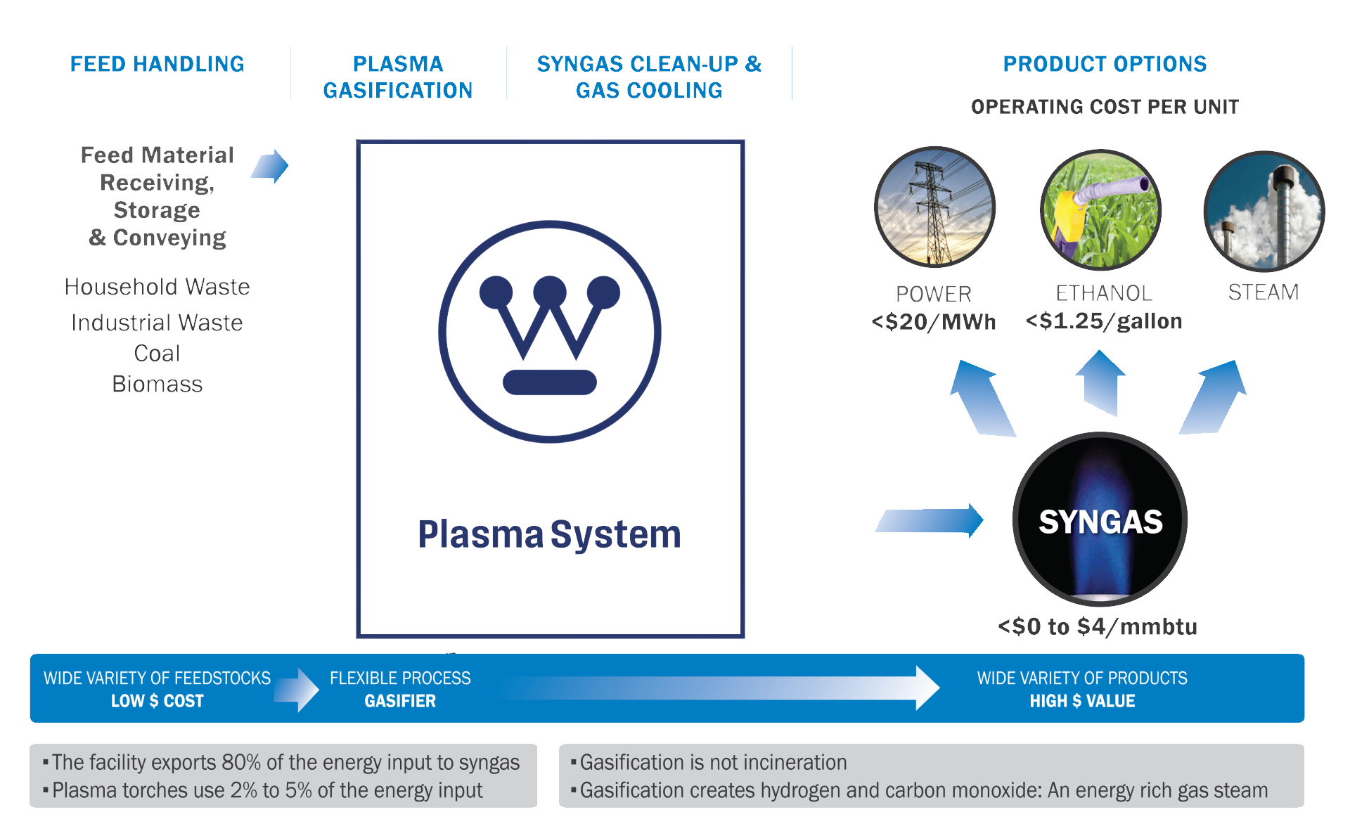The Westinghouse Plasma Gasifier will convert a wide variety of waste streams into a clean syngas which can be further processed to create other forms of energy.